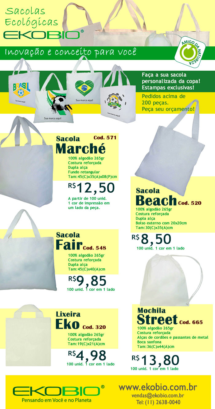 Série de emails marketing criados para divulgação dos produtos promocionais da empresa EKOBIO